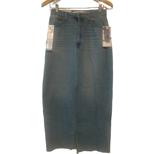 Denim Maxi Skirt Hi-Rise Raw Hem by Tinseltown Size S